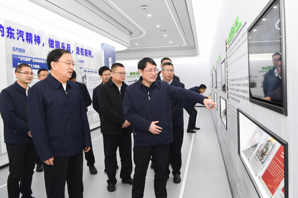 座谈前,任广鹏一行参观了东方电气科技展示厅,深入了解东方电气集团发展历程、六电六业发展等情况。