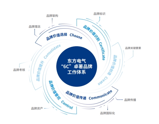 “6c”卓著品牌工作体系立足高端装备制造行业实际,以实现“品牌卓著”为目标,聚焦东方电气品牌价值,由品牌价值选择(choose)、品牌价值识别(certificate)、品牌价值创造(create)、品牌价值传递(communicate)、品牌价值管控(control)、品牌价值提升(consolidate)六个部分组成,阐述展示企业从品牌价值选择到识别、创造、传递、管控,推进价值提升的螺旋进阶的逻辑过程,致力为“中国产品”向“中国品牌”跃升提供系统凯发娱乐下载的解决方案。